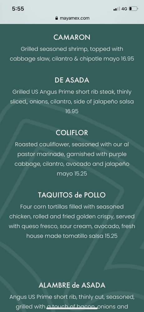 Angus Prime short rib, thinly cut & seasoned. Grilled with onions, poblano peppers, a touch of bacon, topped with melted Oaxaca cheese & a side of corn tortillas